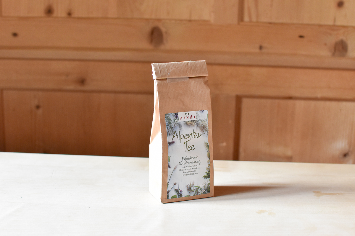 Aurelia Naturprodukt, eine erfrischend-sanfte Kräutertee Mischung. Wie der Tau auf den Allgäuer Bergwiesen!
